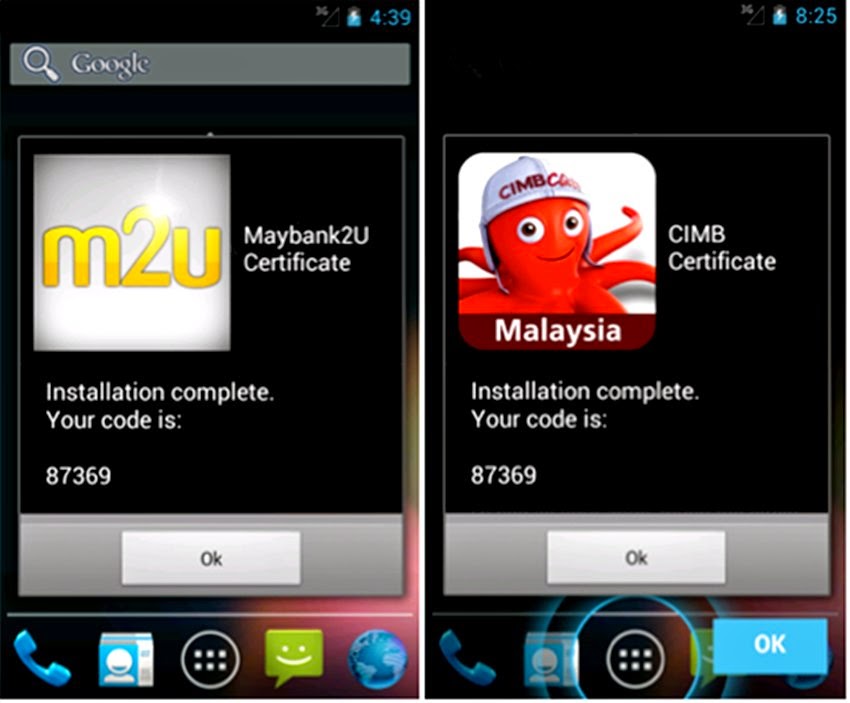 - Malware tersebut akan memaparkan satu laman web palsu yang menyerupai laman web perbankan online dan meminta no telefon dan sistem pengoperasian.